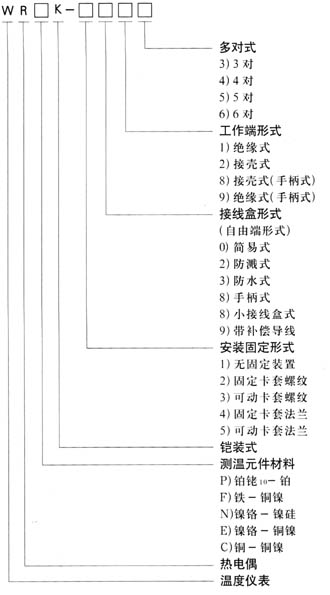 T型分度号产品需与本厂协商订货。