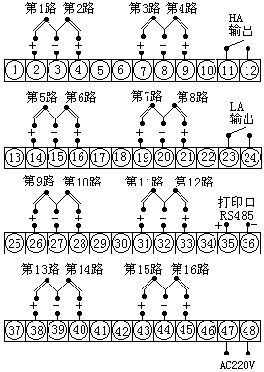 | 16路智能巡检仪端子接线方法 | |||